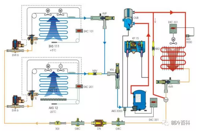 氨制冷系統:一般在大型冷凍庫中應用。