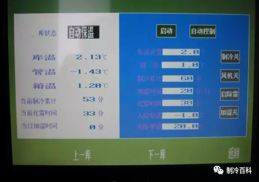 冷庫制冷系統正常運行時蒸發器的表面溫度遠低于空氣的露點溫度,空氣中的水分會析出而凝結在管壁上。若管壁溫度低于0°時水露則凝結成霜。結霜也是制冷系統正常運行的結果,所以蒸發器表面允許少量的結霜。